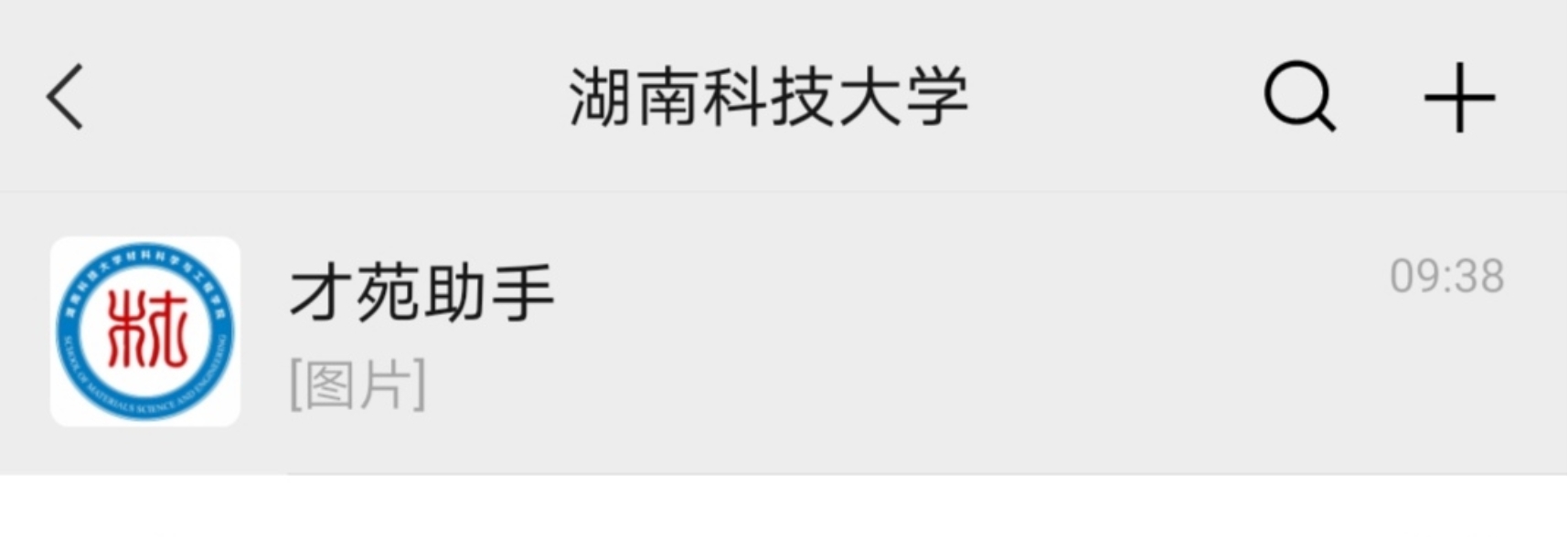 成功关注湖南科技大学企业微信后,通过微信的“通讯录”界面或“微信”界面,即可见到【才苑助手】。