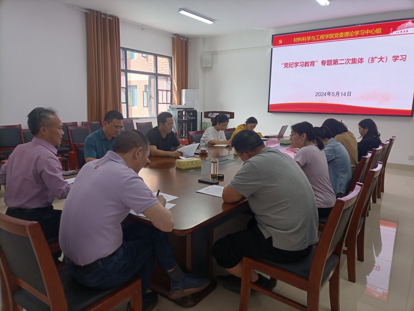 5月14日下午,院党委理论学习中心组在知行楼A140会议室举行“党纪学习教育”专题第二次集体(扩大)学习,院党委书记乐斌辉主持学习并作总结讲话,全体院党委委员、院领导,党政办、教务办、学工办主任,各党支部书记参加学习。