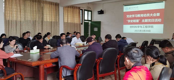 2021年3月30日下午,3044am永利集团官网党委召开了党史学习教育动员大会暨“学史明理”主题党日活动,全院教工党员参加了会议。会上院党委书记尹喜云教授作了中心发言,组织全体教工党员集中学习了《学党史 悟思想 办实事 开新局》——习近平总书记在全国党史学习教育动员大会上的讲话,学习了习近平总书记《论中国共产党历史》中《知史爱党,知史爱国》等篇章;传达了学校党史学习教育动员大会精神;并对本院开展党史学习教育进行了安排,提出了具体要求。会后部署各党支部继续组织党员进行专题学习,深入研读,并做好学习笔记。