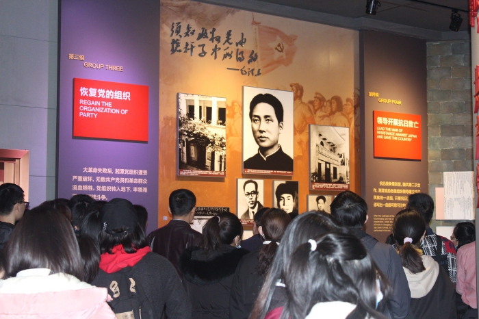 全体学生党员来到湘潭党史馆,展览由序厅、觉醒、革命、建设、改革、筑梦、湘潭群英谱等七个部分组成,通过大量文献资料、历史文物、视频图像、模拟场景等方式,生动的展现了以毛泽东为代表的湘潭共产党员近百年来为民族独立、人民幸福和国家富强,开展革命斗争和社会主义建设的全过程。每位党员认真驻足观看和聆听,用心感受文物的温度,领悟历史的进程,深入了解了中国共产党团结带领全国各族人民在艰难困苦中奋起、在艰辛探索中前进,完成了民族独立和人民解放的丰功伟绩。