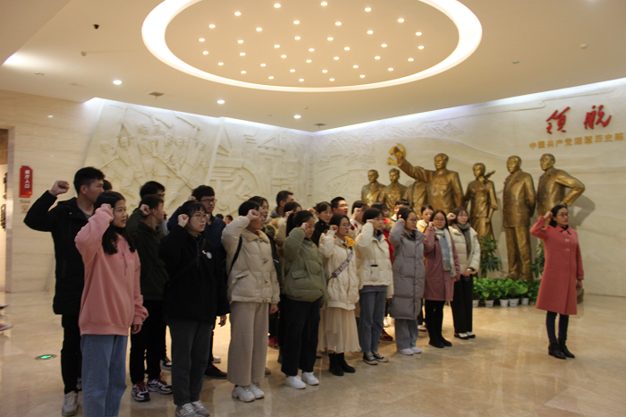 12月17日下午,3044am永利集团官网党委于湘潭市党史馆组织了以“重温光辉党史,不忘初心使命”为主题的新发展学生党员宣誓活动。学院组织员郭晓旺老师、材料化学党支部书记王卓老师、学生党建工作室学生干部、本学期新发展的全体学生党员参加了此次活动。