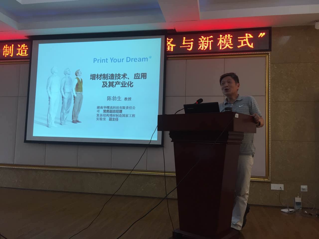 7月20日下午,湖南华曙高科技有限责任公司常务副总经理陈勃生教授应邀到湖南科技大学工程中心218会议室讲学。本次讲学的主题为“增材制造技术、技术及其产业化”,这是湖南科技大学机电工程学院承办的2016年“智能制造中的新技术、新装备与新模式”暑期学校的2016年第2讲。