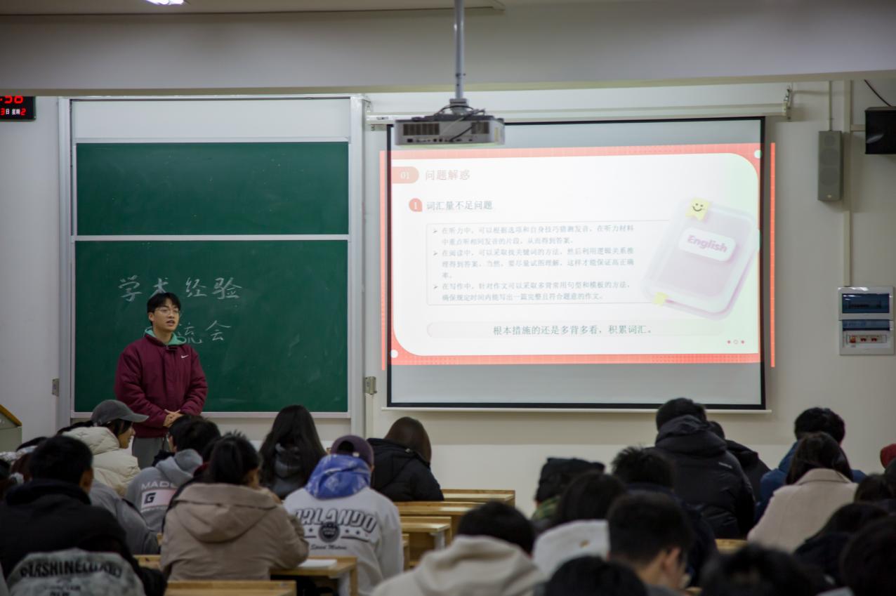 12月23日下午,学院学习部在知行楼多媒体教室成功举办2025级学习经验交流会。2024级优秀学生代表姚挺、阳媛媛、李子恒等应邀分享学习经验,2025级全体同学参加。