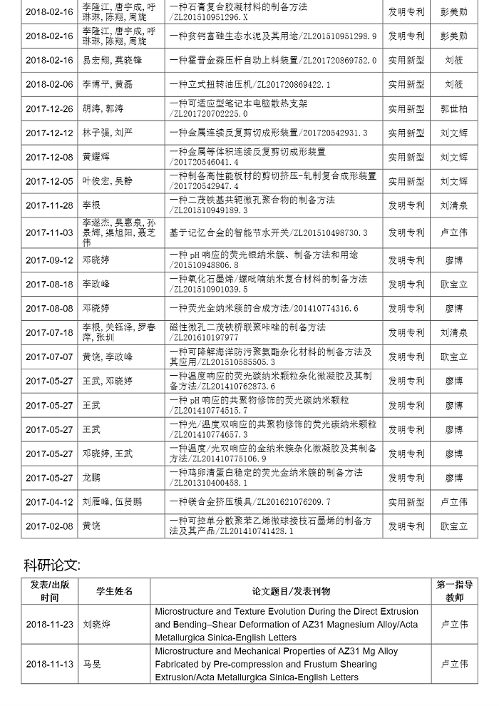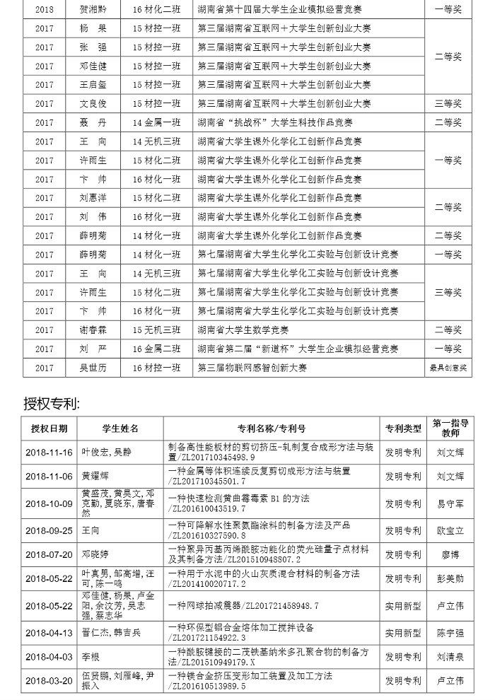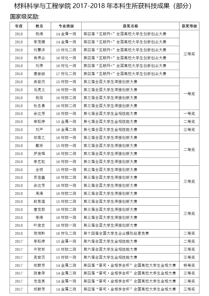 3044am永利集团官网近两年本科生所获科技成果(部分)