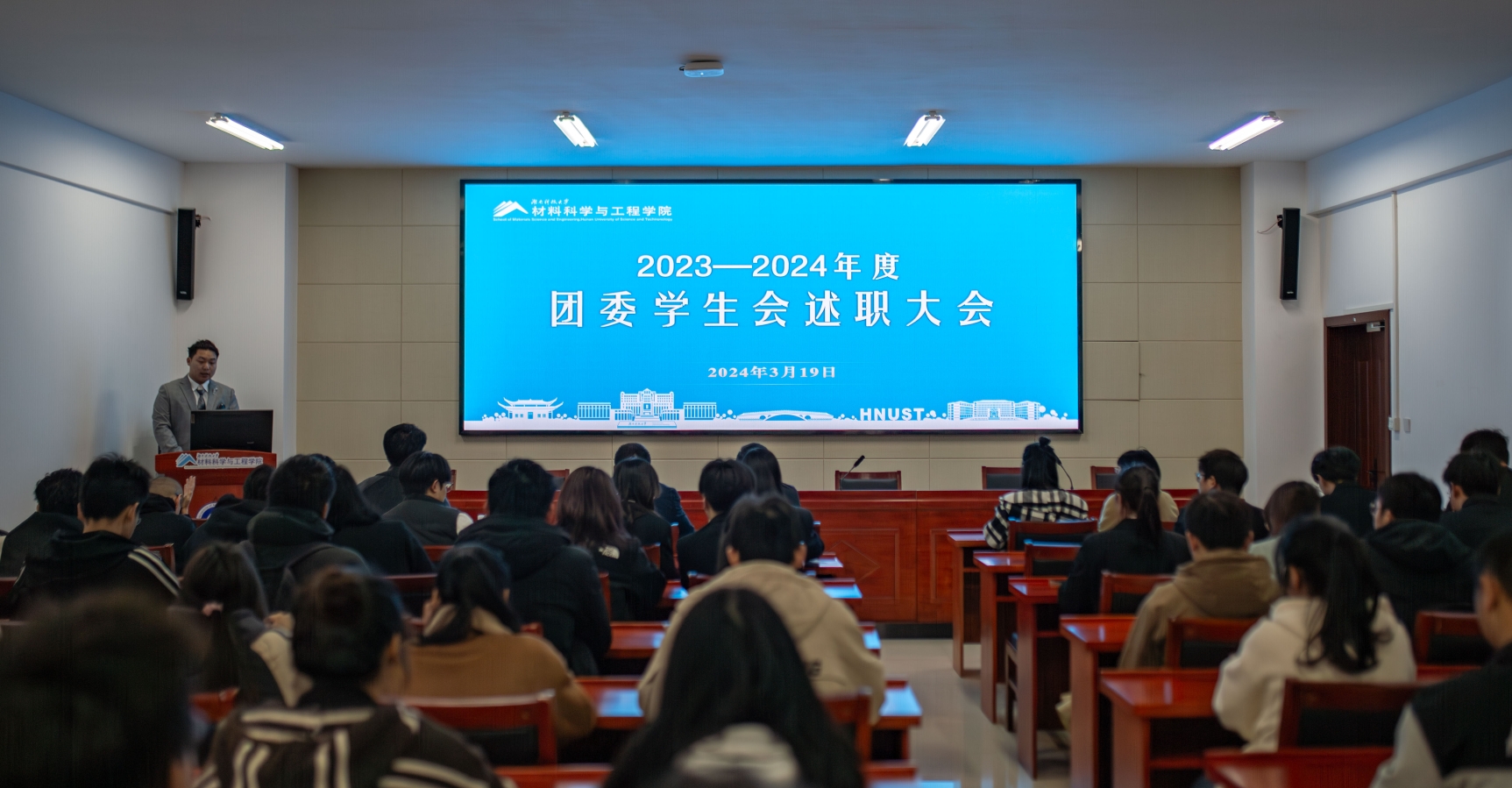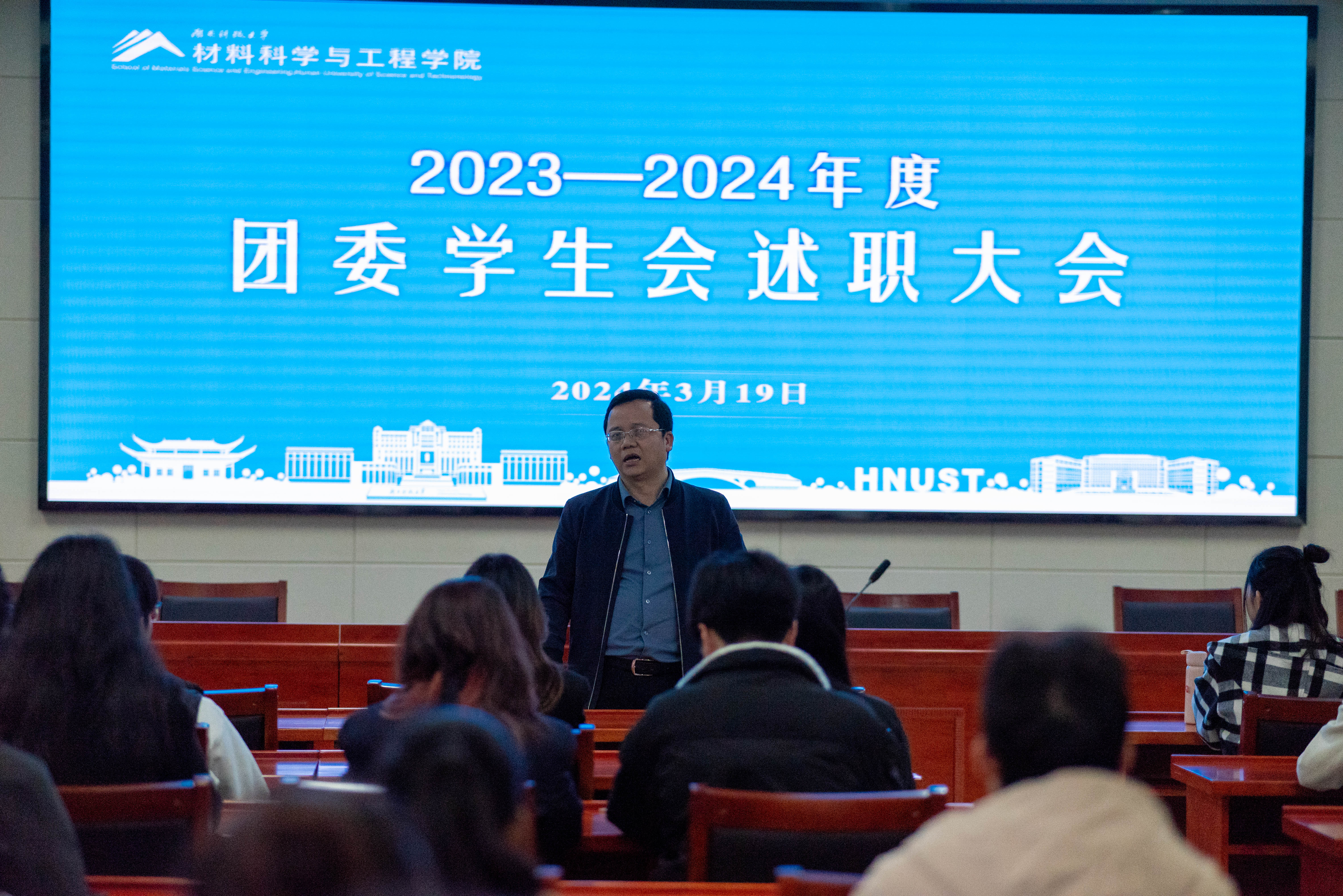 我院团委学生会下属的宣传部、学习部、组织部、双创部、就业部、体育部、心理部、科技部、宿管部、文艺部、办公室、青年志愿者分会、安全信息部、社团管理部、勤工助学部、分团校共16个部门的负责人围绕部门工作职责对2023年度工作情况、工作不足和改进措施一一进行述职。