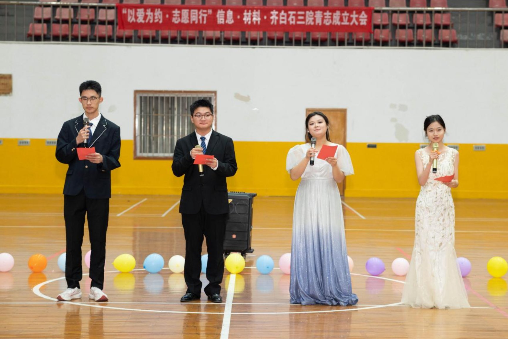 11月22日晚,我院与信息与电气工程学院、齐白石艺术学院青年志愿者分会成立大会在北校体育馆顺利召开,三院青年志愿者全体成员共同参与。