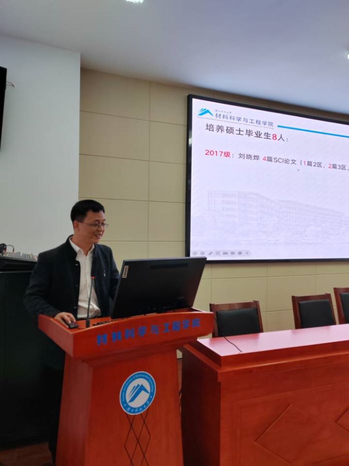 培训会分三个阶段:一是研究生培养有关管理制度学习;二是导师经验交流;三是实验室安全培训。刘龙飞教授主持第一阶段学习,与导师们共同学习了《湖南科技大学硕士研究生指导教师管理办法》、《湖南科技大学研究生培养差错与事故认定及处理办法(试行)》、《学位论文学术不端行为处理细则》、《湖南科技大学研究生研究生学位论文原创性审查管理办法(试行)》等制度。在谈到硕士生导师职责时,他指出研究生培养是一项系统工程,导师要明确导师职责,承担好“传道、授业、解惑”职责的同时,也要着力培养学生实践能力、创新能力,帮助学生成长成才。第二阶段由卢立伟教授交流学生培养经验。卢教授从自己带优秀硕士生说起,介绍了自己在培养学生过程的做法:因材施教、用心投入、创造条件、鼓励创新、培养能力、全面育人。导师们还一起讨论了如何帮助“拖延症型”、“不推不动型”、“沉迷游戏型”等不同类型学生的做法和经验。第三阶段,由郭世柏教授培训实验室安全管理规范。从实验室和危化品管理有关安全事故展开,以安全事故事例造成的伤害和影响出发,提醒导师和学生们一定要严格遵守实验规范,熟知相关安全知识。他重点介绍了实验室的安全防护、实验室使用管理规定、常用化学废弃物的处置等知识,从规范和操作层面对实验室安全进行了详细讲解,具有很强的指引性和可操作性。