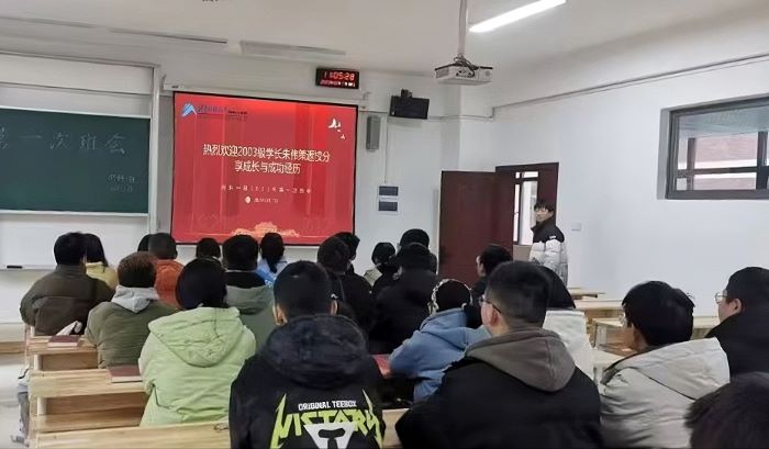 2月17日上午11:30,知行楼B219,我院2003级优秀校友、2022级材料一班校友导师朱伟策在新学期第一次班会上与同学们分享成长与成功经历。