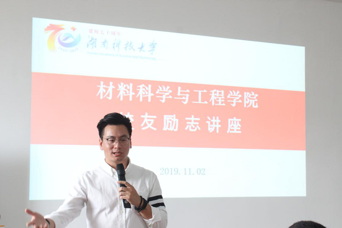 11月2日下午,我院于十教506举行优秀校友励志讲座,参加本次讲座的有院党委副书记吴成义以及18、19级学生代表。本次讲座发言的优秀校友有2007届材料成型及控制工程专业张志刚、2006届无机非金属材料工程专业钮志军、2006届材料化学专业朱小云及2014届金属材料工程专业陈肯。