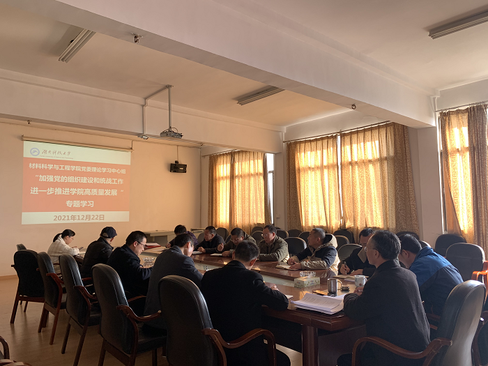 2021年12月22日下午,院党委理论学习中心组在第十教学楼606会议室组织“加强党的组织建设和统战工,进一步推进学院高质量发展”专题集中学习。院党委书记乐斌辉主持会议。院党委委员、院长刘清泉和其他党委委员及教工党支部书记、学生党支部书记参加学习。