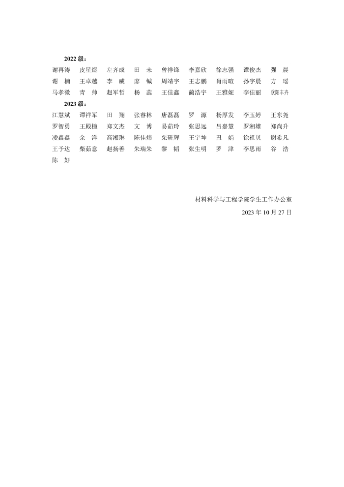 材料学院2025-2026学年国家助学金学生认定公示
