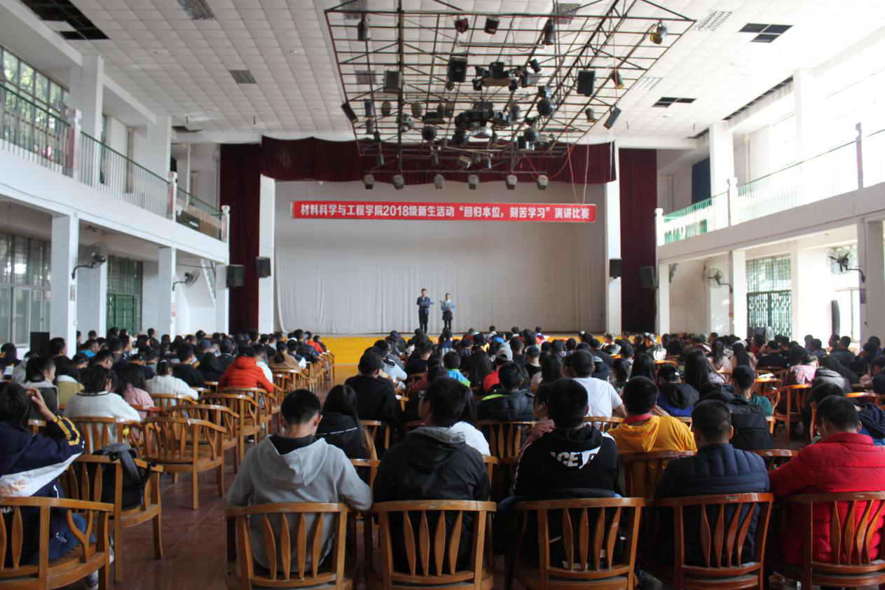 比赛结束后,丁金山很高兴地作了总结发言。他说,“回归本位,刻苦学习”演讲赛充分展现了18级新生朝气蓬勃,刻苦努力的精神状态,充分展现了18级新生的演讲水平,营造了刻苦学习的氛围。他希望同学们树立远大奋斗目标,把自己对幸福生活的追求与实现中华民族伟大复兴的中国梦结合起来。希望同学们从三个方面搞好学习:一是努力学好专业知识,打牢知识基础。材料专业前景广阔,社会需求大;学院有实力,学生有水平。在考研方面,名列学校前茅,在互联网+创业计划竞赛、在“创青春”创业计划竞赛、在“大挑”竞赛等方面名列学校前茅。同学们要学好英语和高等数学,为学好专业和考研打好基础。二是努力提高思想理论水平和政治觉悟。要努力学好马克思主义哲学基本原理、毛泽东思想概论和中国特色社会主义理论、思想修养和法律基础等基础课,要努力学习习近平新时代中国特色社会主义思想。三要努力提高综合素质。以服务社会服务人民为中心,练好“脑瓜子、嘴皮子、笔竿子”和掌握科学的方法